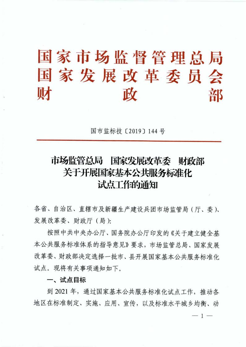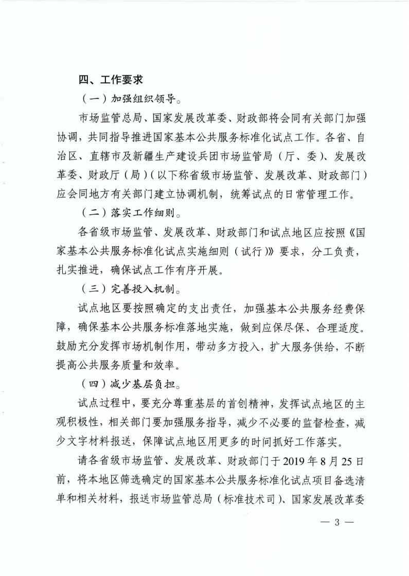 《市场监管总局 国家发展改革委 财政部关于开展国家基本公共服务标准化试点工作的通知》