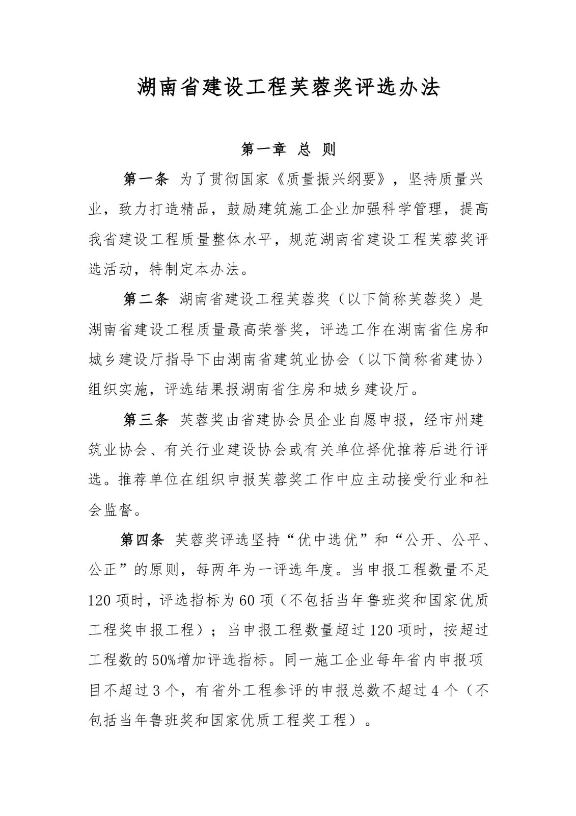 湖南省建设工程芙蓉奖评选办法