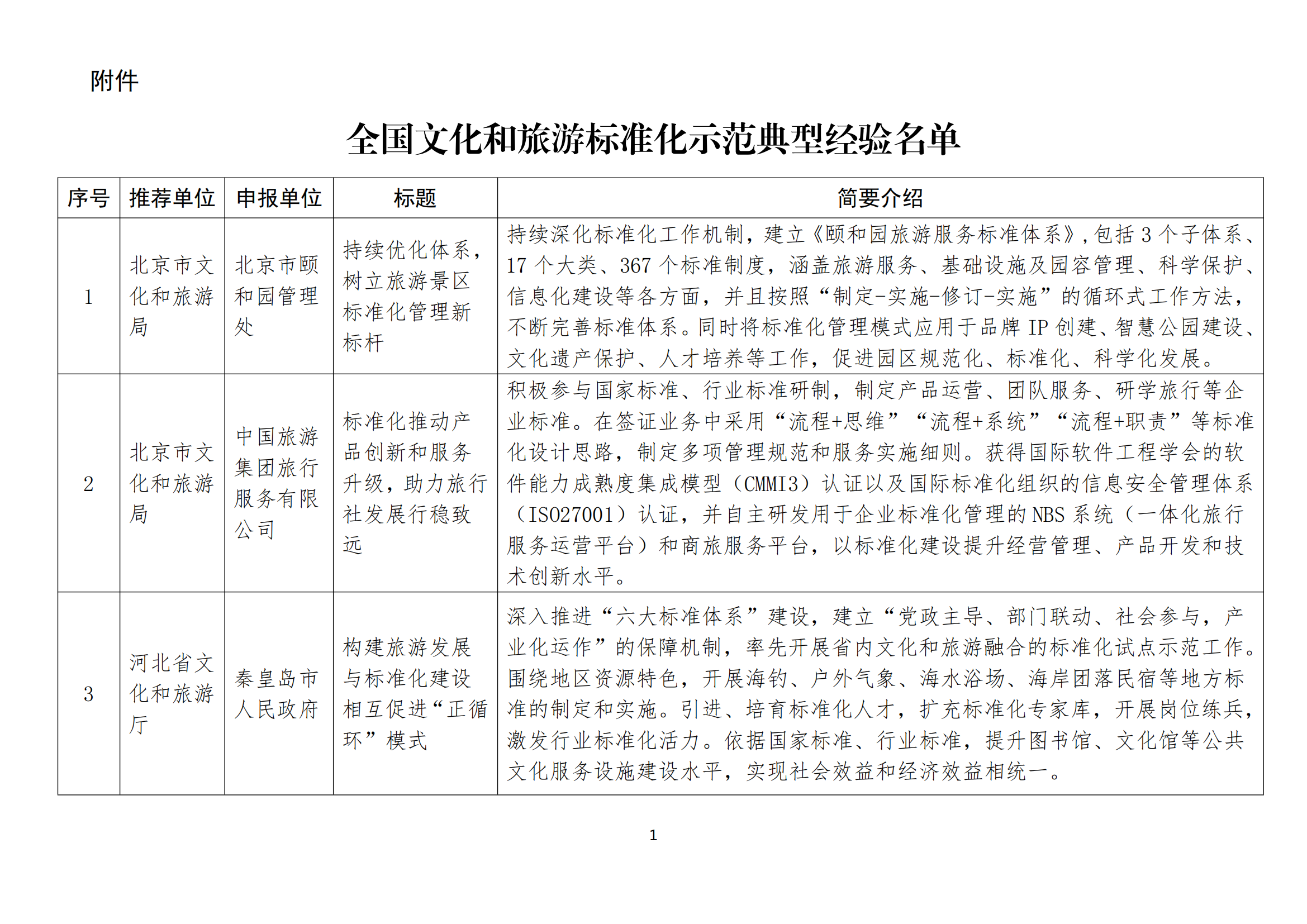 来源:文化和旅游部办公厅关于公布全国文化和旅游标准化示范典型经验名单的通知 (mct.gov.cn)