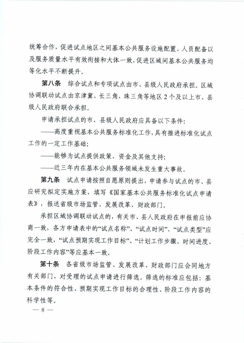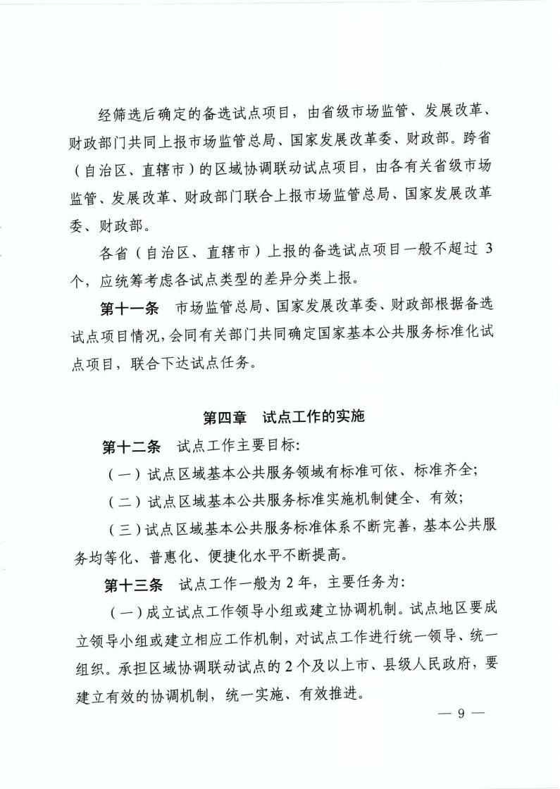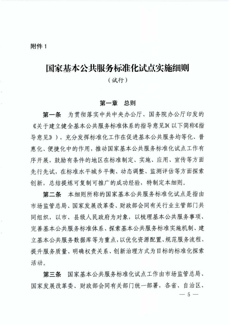 《市场监管总局 国家发展改革委 财政部关于开展国家基本公共服务标准化试点工作的通知》