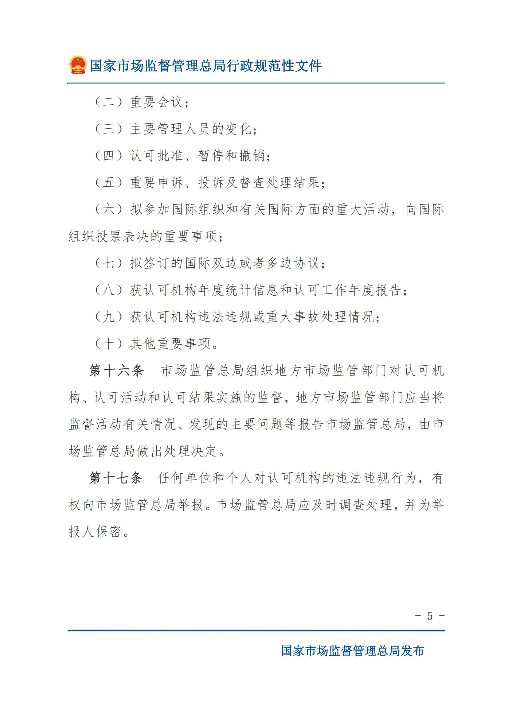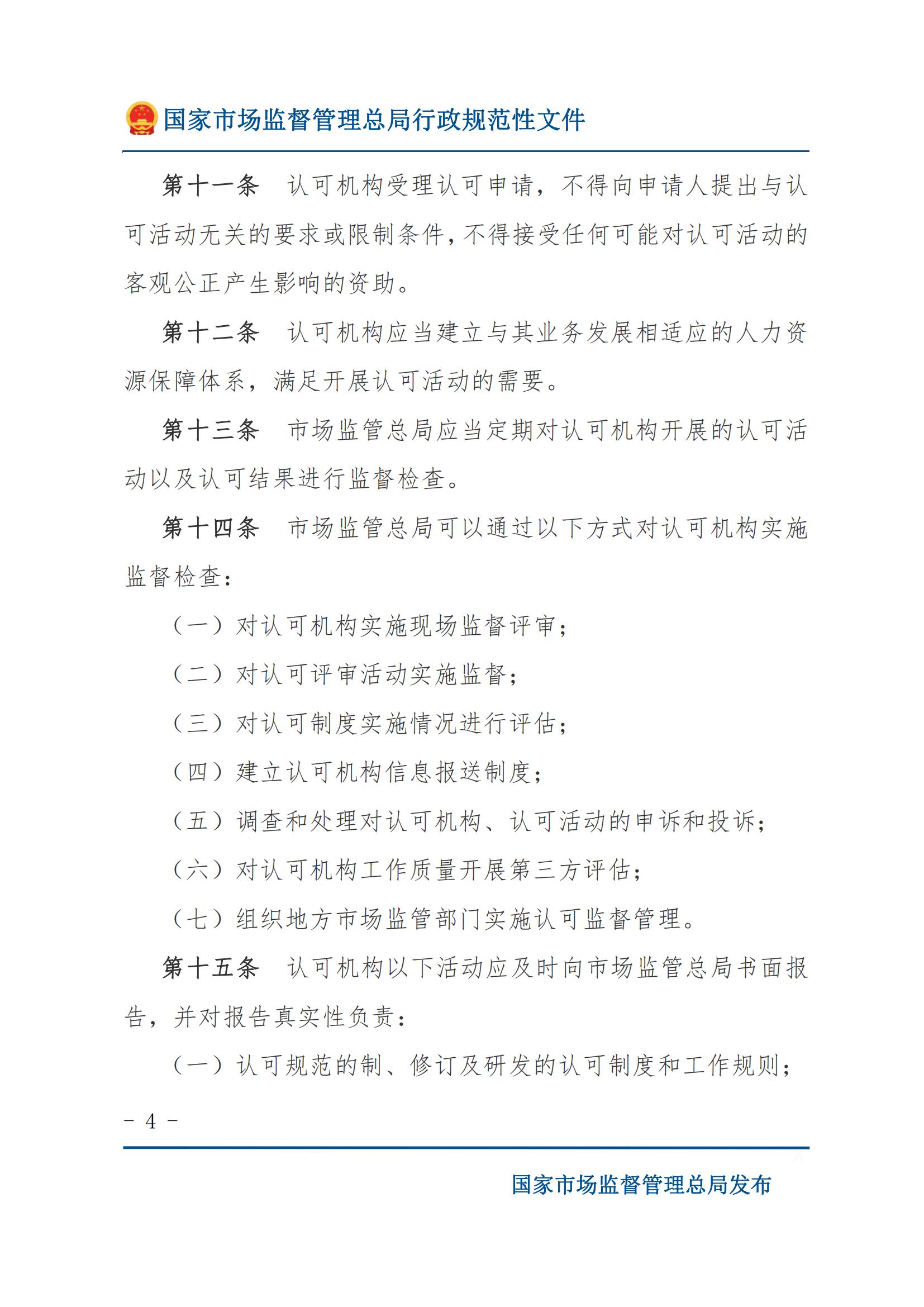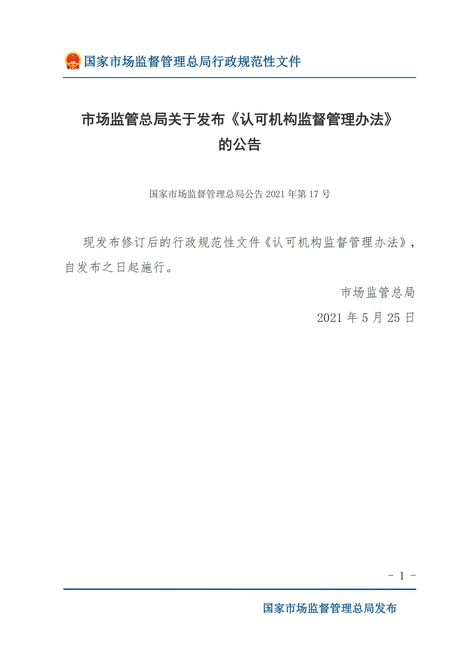 《认可机构监督管理办法》